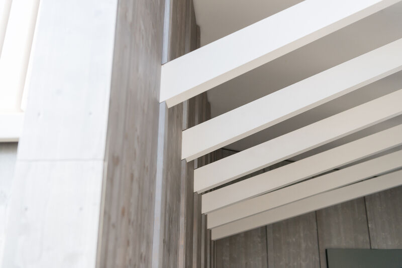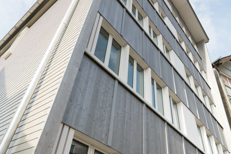Leistungen: Montagebau in Holz inkl. Innenausbau, äussere Verkleidungen und Treppenhaus